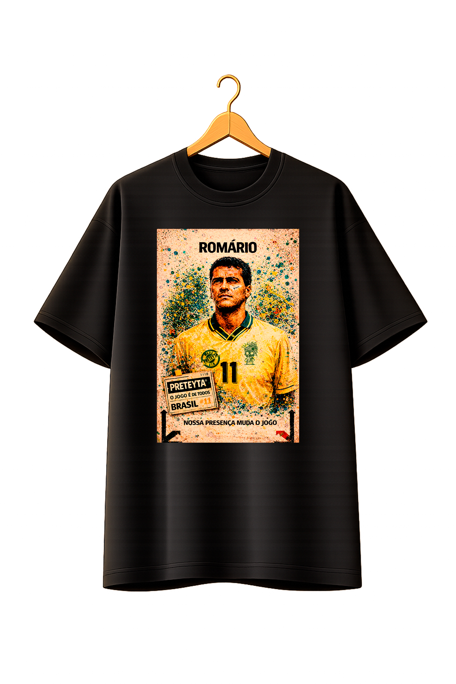 Camiseta Oversized Copa Preta - Romário - Drogba | Preteyta