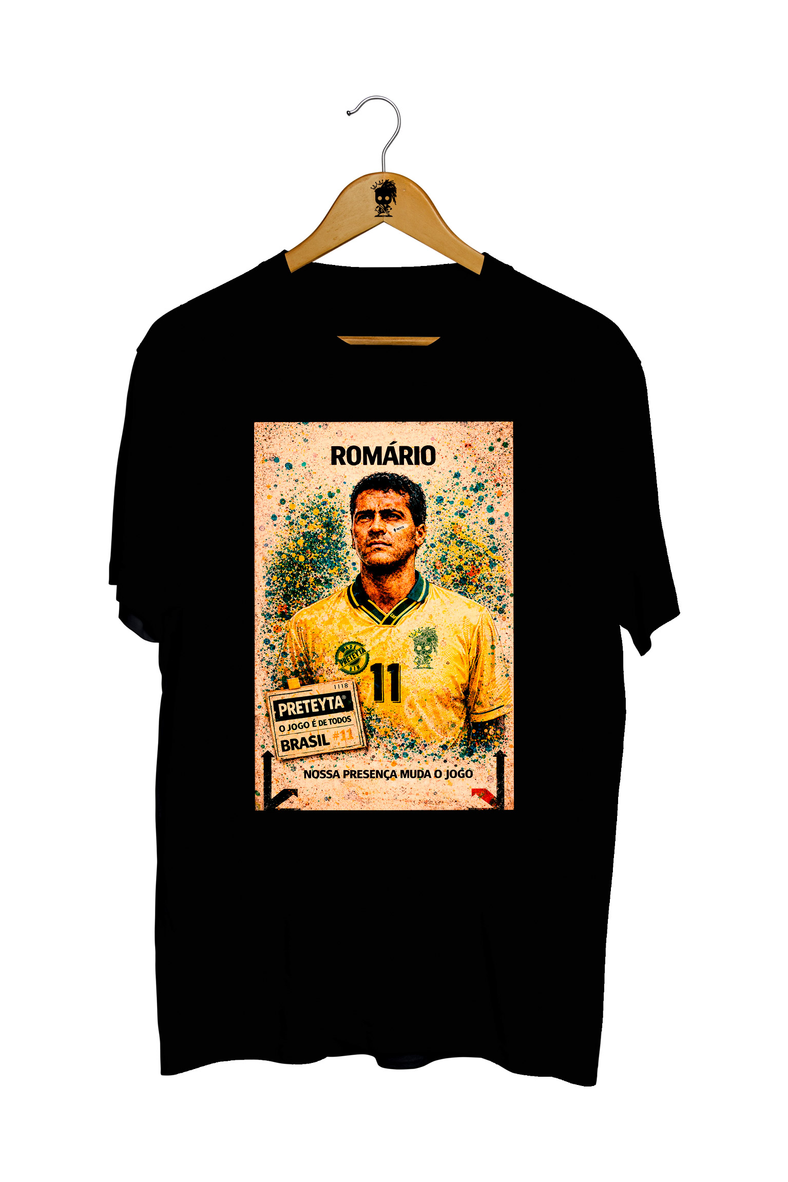 A Camiseta Romário - Brasil é ideal para quem valoriza estilo, atitude e representatividade. Produzida em algodão, ela garante conforto no dia a dia, caimento moderno e a originalidade que só a Preteyta tem.
